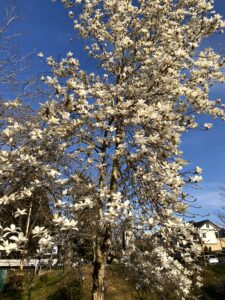 また、白いモクレンは見頃の満開を迎えており、紅モクレンはつぼみの状態となっております。