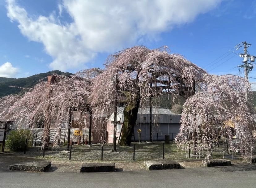 この枝垂れ桜は、役場柏崎支所前の枝垂れ桜を接ぎ木して育てられたものです。。